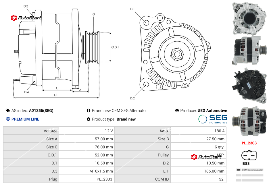 | Зовнішній діаметр шківа O.D.1[мм] | O.D.1 | 52.00 |