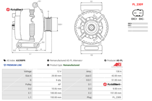 | Зовнішній діаметр шківа O.D.1[мм] | O.D.1 | 51.00 |