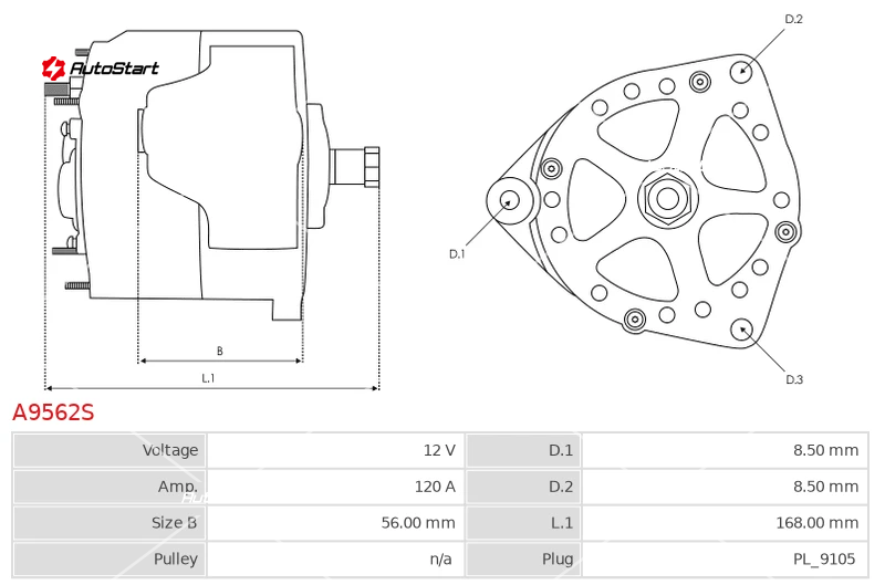 | Діаметр отвору D.1 | D.1 | 8.50 |