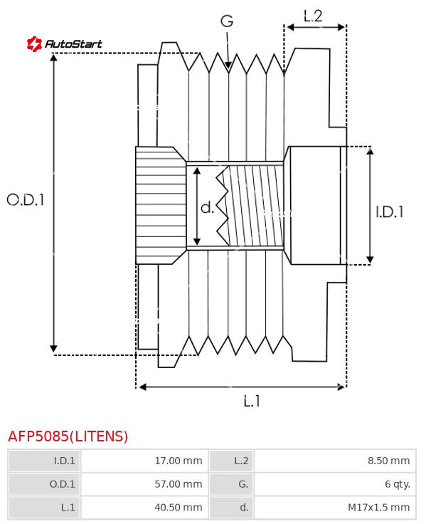 | Загальна довжина шківа L.1[мм] | L.1 | 40.50 |