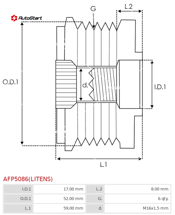 | Кількість канавок шківа G.[мм] | G. | 6 |