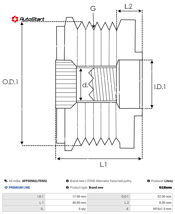 | Внутрішній діаметр I.D.1[мм] | I.D.1 | 17.00 |