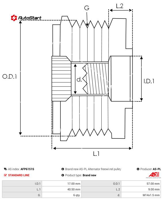 | Загальна довжина шківа L.1[мм] | L.1 | 40.50 |