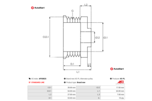 | Висота юбки шківа L.2[мм] | L.2 | 27.00 |