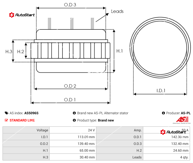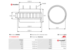 | Діаметр посадкового місця обмотки O.D.2[мм] | O.D.2 | 139.40 |
