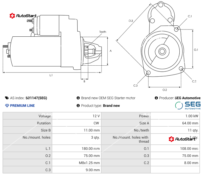| Відстань між кріпильними отворами O.1[мм] | O.1 | 75.00 |