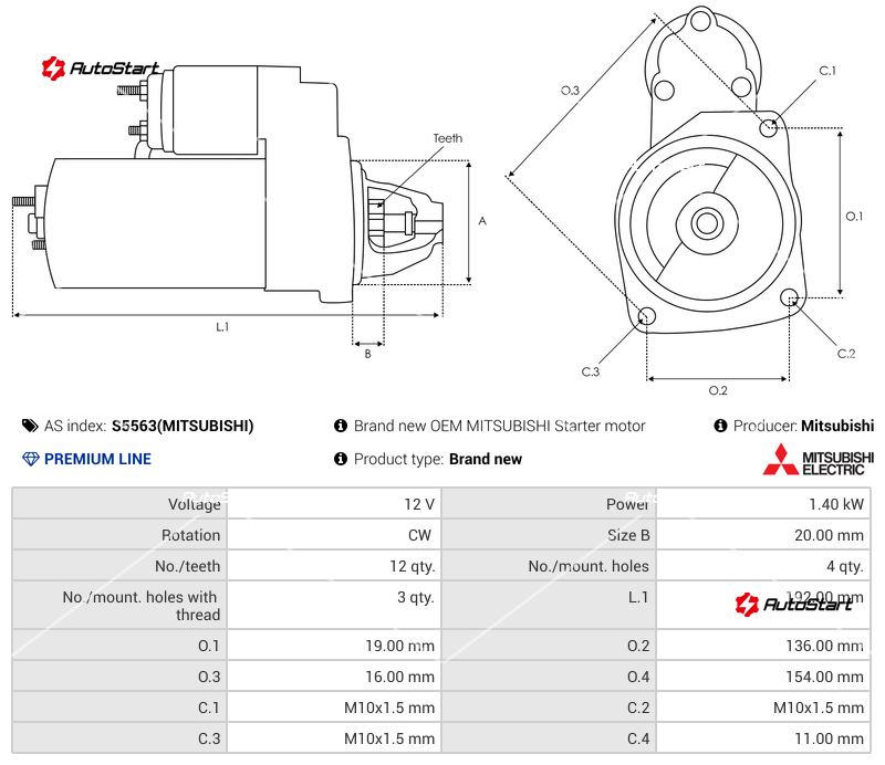 | Відстань між кріпильними отворами O.1[мм] | O.1 | 19.00 |