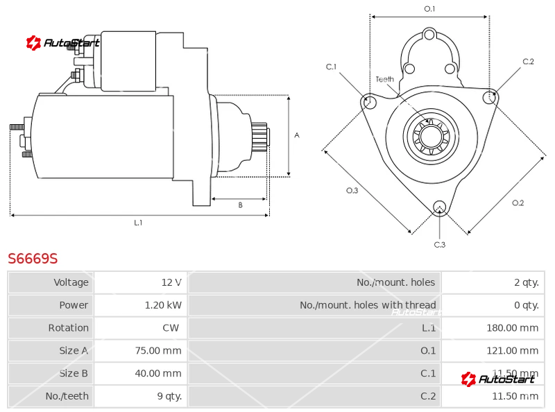 | Відстань між кріпильними отворами O.1[мм] | O.1 | 121.00 |