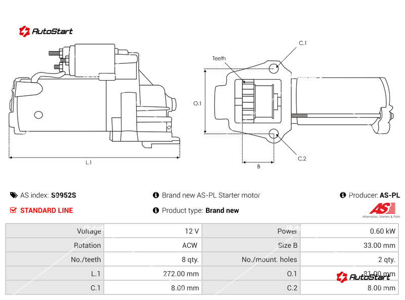 | Довжина L.1[мм] | L.1 | 272.00 |