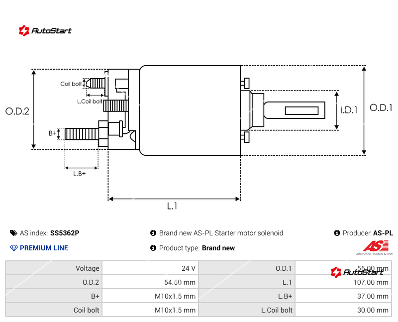 | Діаметр кришки втягуючого O.D.2[мм] | O.D.2 | 54.50 |