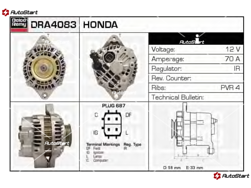 HONDA : 31100-P2A-A02 – 31100-P2E-A01 – 31100-P2E-A02 – AHGA24 AHGA25 – AHGA35