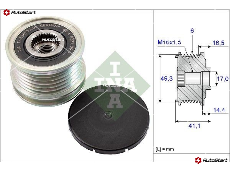 Загальна довжина шківа L.1[мм] | L.1 | 41.10 |