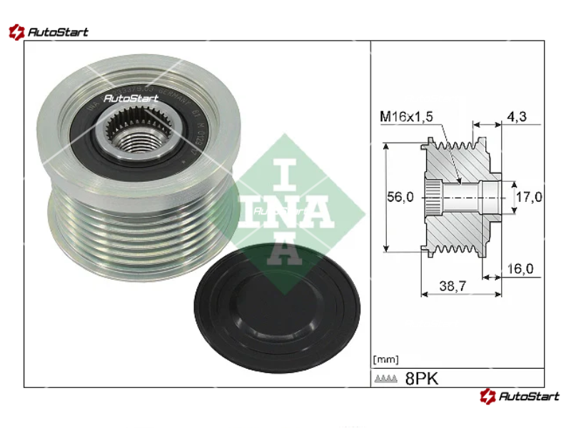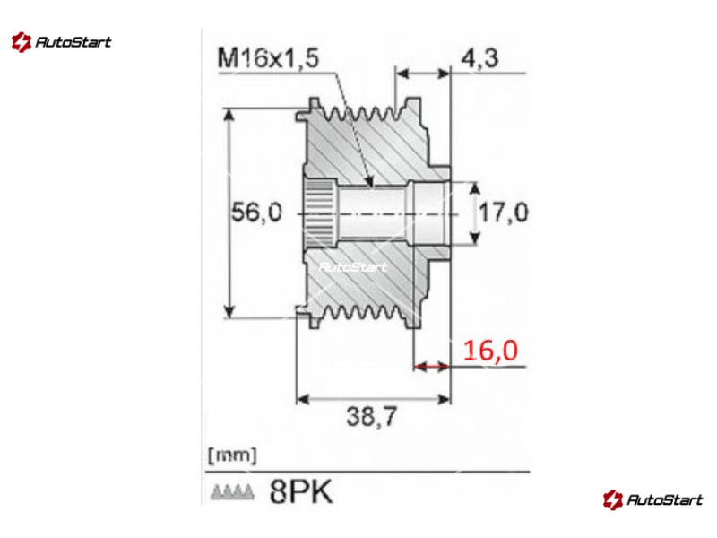 | Кількість канавок шківа G.[мм] | G. | 8 |