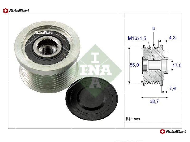 | Загальна довжина шківа L.1[мм] | L.1 | 38.70 |