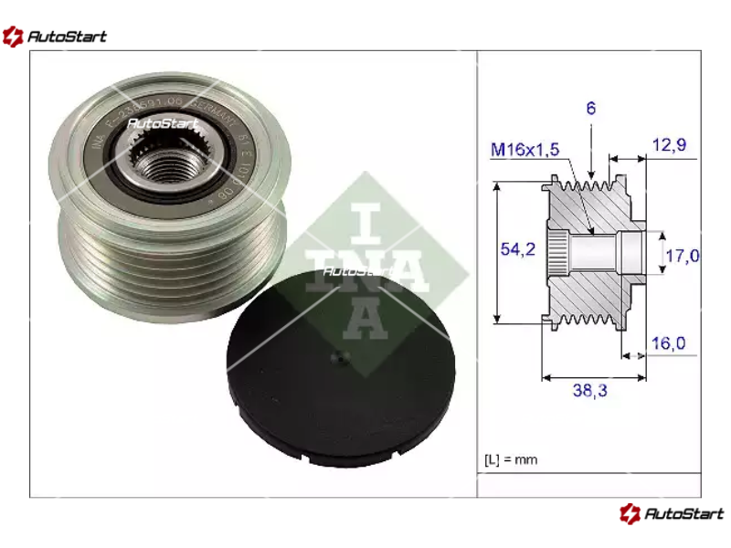 | Загальна довжина шківа L.1[мм] | L.1 | 38.30 |