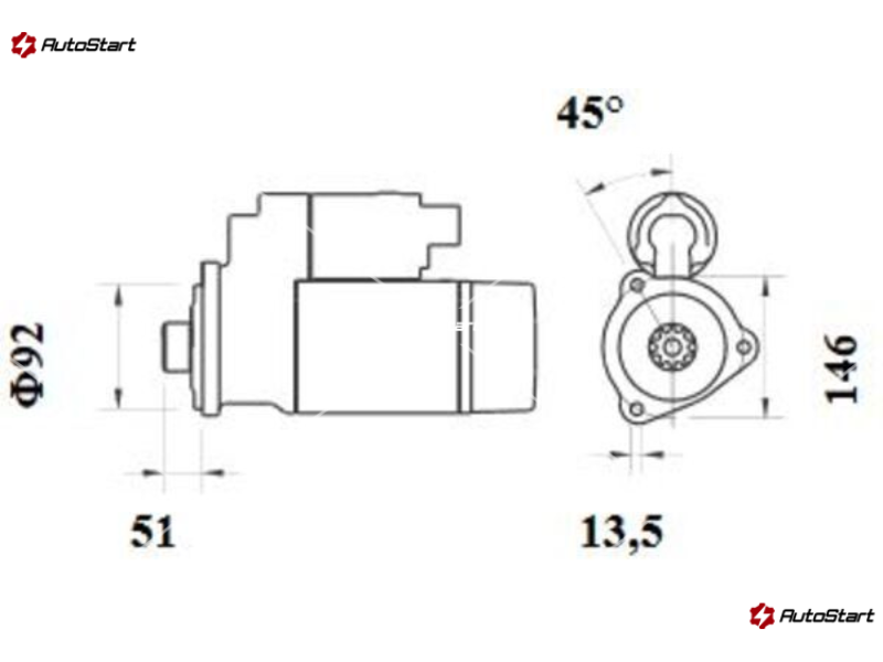 Діаметр точок кріплення 146 мм, для глибини маховика 51 мм, крок зубів 14,47 мм
