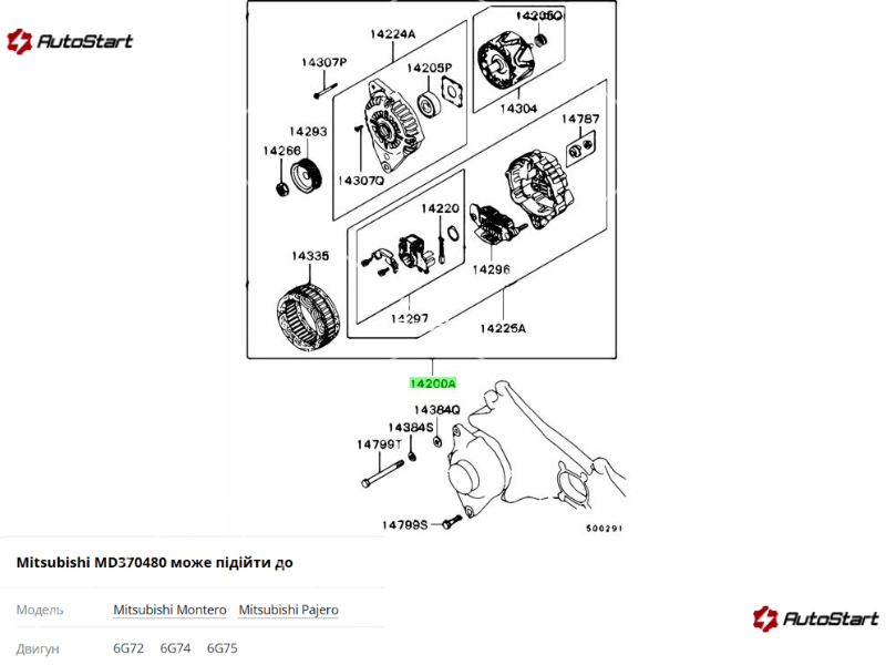 ДЕТАЛІ ДО MD370480 Генератор MITSUBISHI