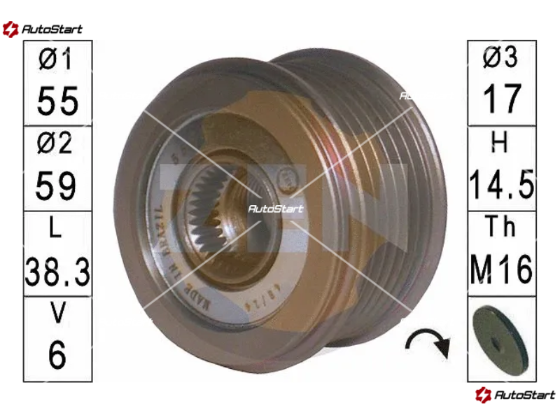| Загальний діаметр шківа, O.D.2[мм] | O.D.2 | 59.00 |